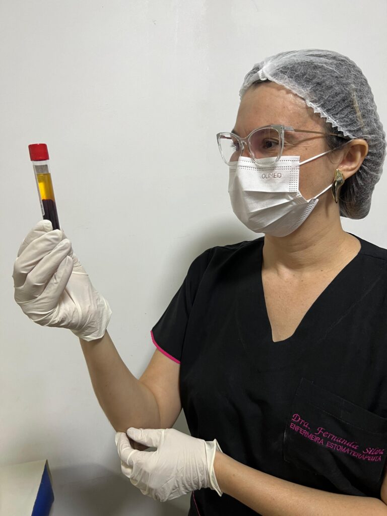“A matriz de fibrina é uma técnica que usa fração de fibrina do sangue centrifugado para tratar feridas e outras condições. A Fibrina Rica em Plaquetas é um concentrado plaquetário que usa uma matriz de fibrina para liberar fatores de crescimento de forma prolongada”, explica a coordenadora do Ambulatório de Estomaterapia do HRIS, Lívia Maria.
